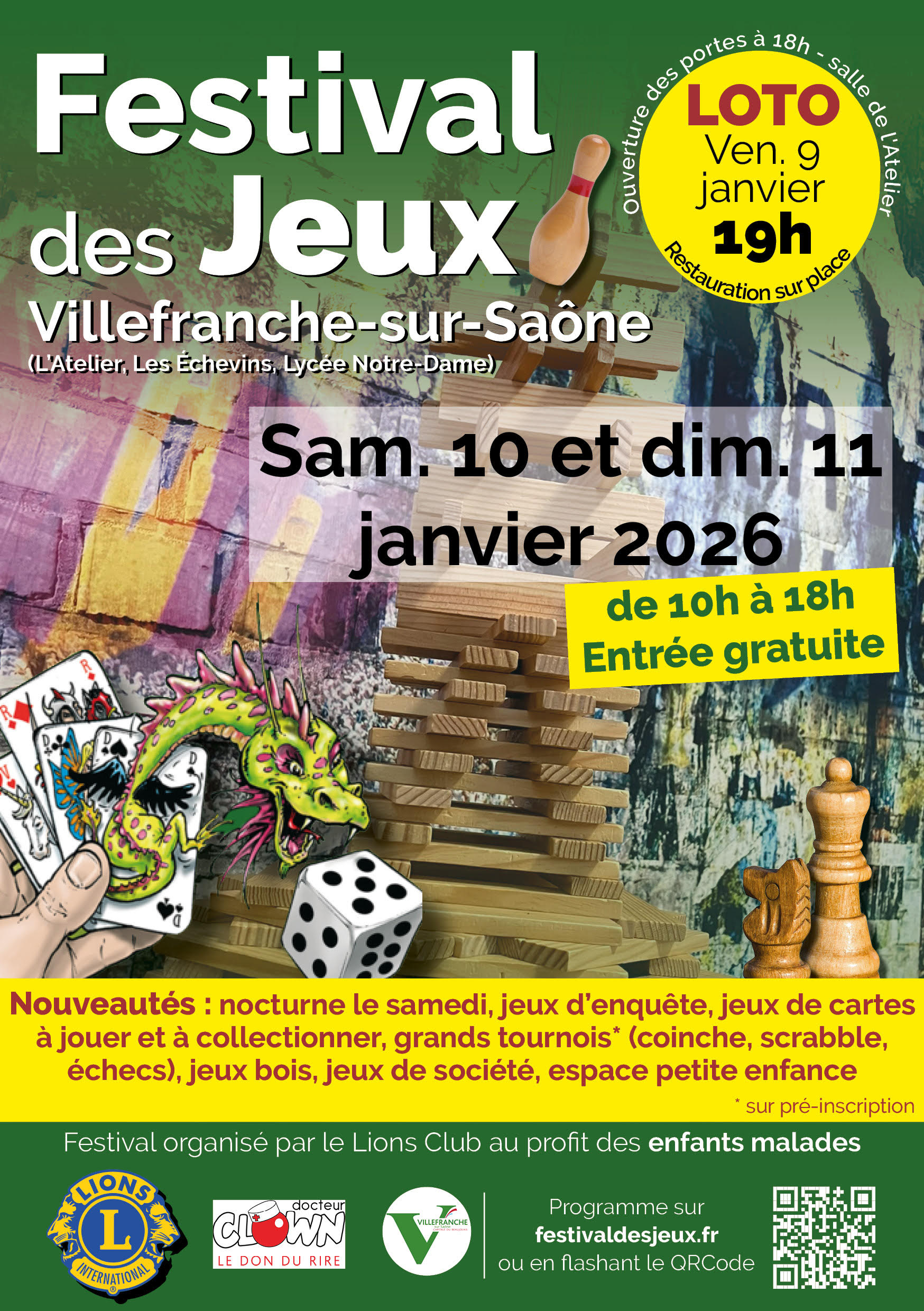 Venez retrouver toute l’équipe des ludothèques au Festival des jeux organisé par le Lions Club de Villefranche et du Beaujolais.